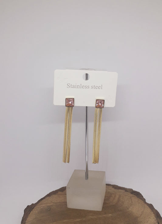 Anti Tarnish Fancy Pink Studded Chain Earrings