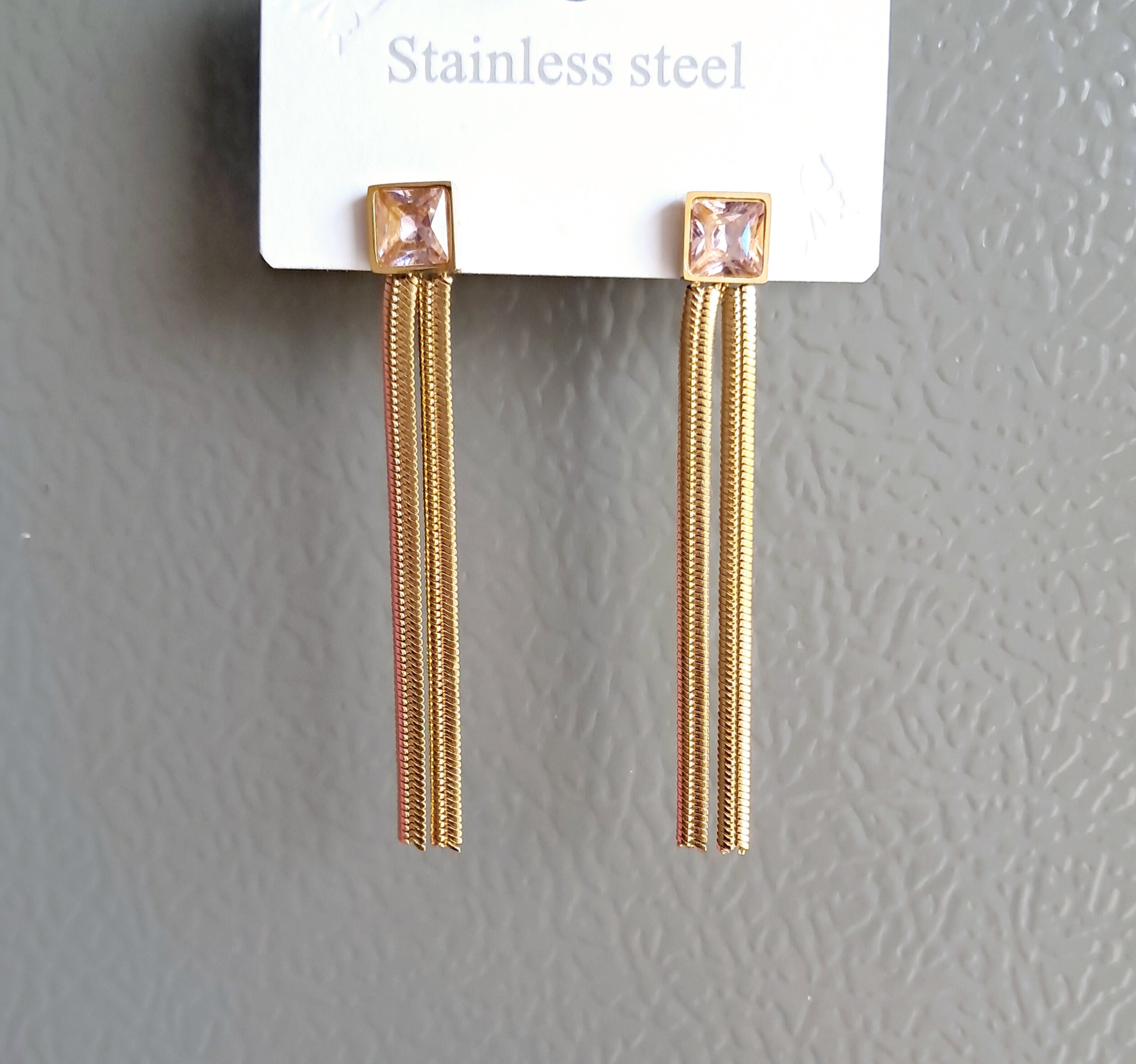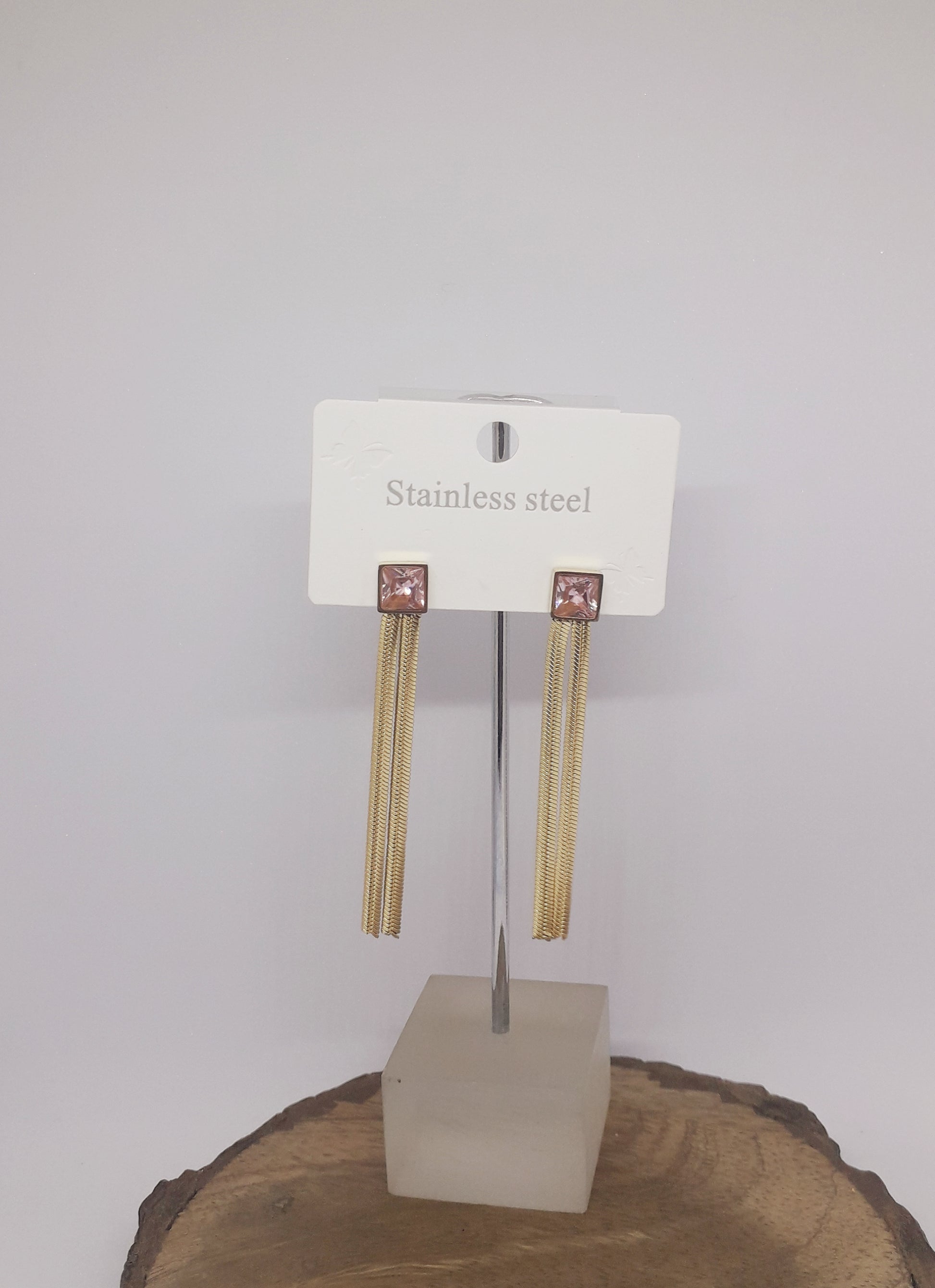 Stainless steel Gold Shade Fancy Pink Studded Chain Earrings