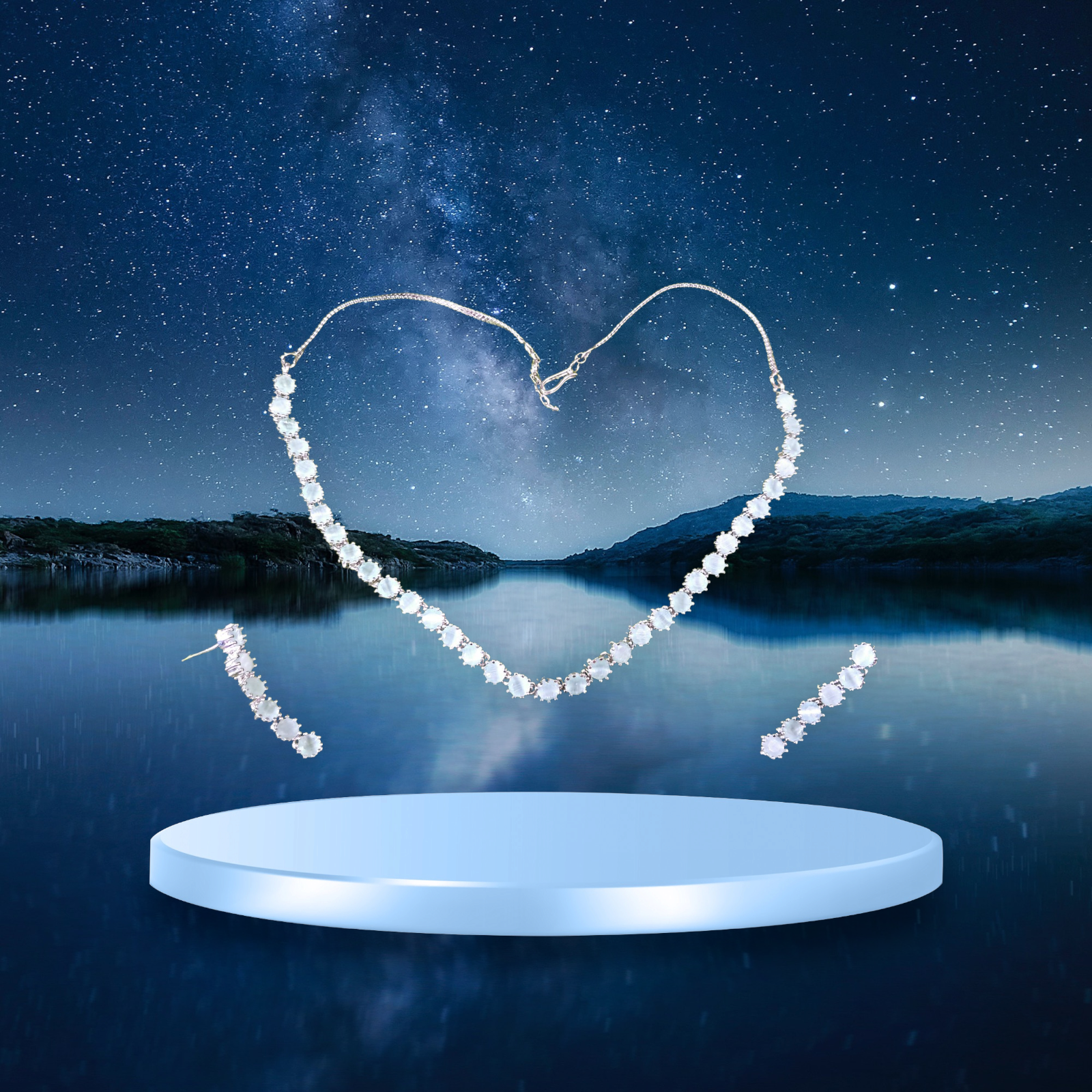 Premium Quality Pastel Mint Shade Charming AD Necklace set