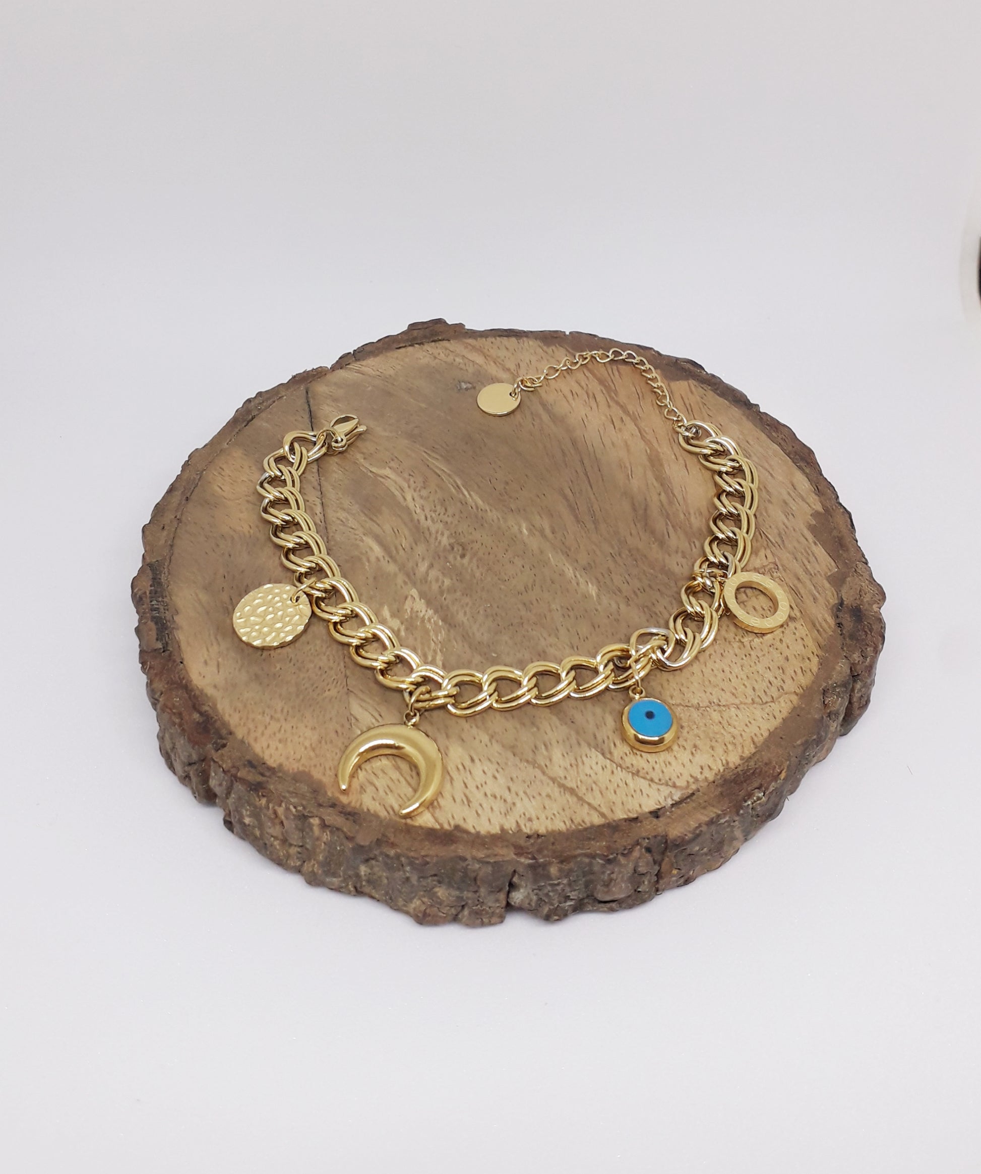 Premium Quality Anti Tarnish Stainless Steel Gold Shade Chunky Charm Bracelet