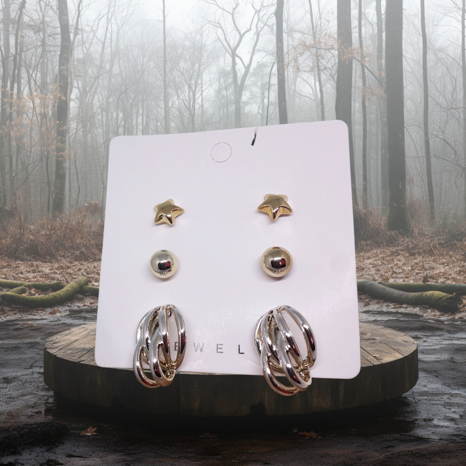 Perfect gift for any occasion!! Set of 3 Combo Earring Studs - Gold Shade