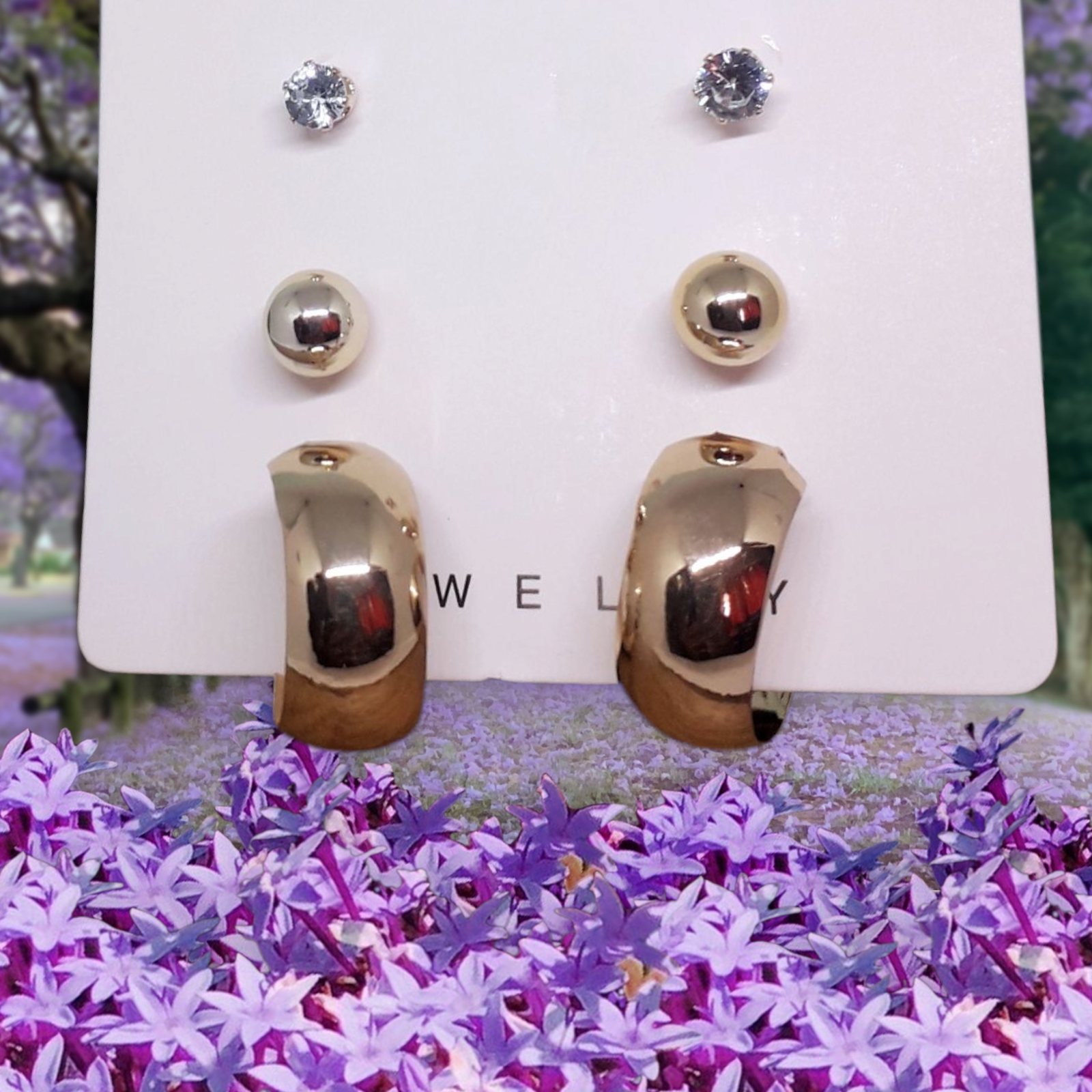 Perfect gift for any occasion!! Set of 3 Combo Earring Studs -Gold Shade
