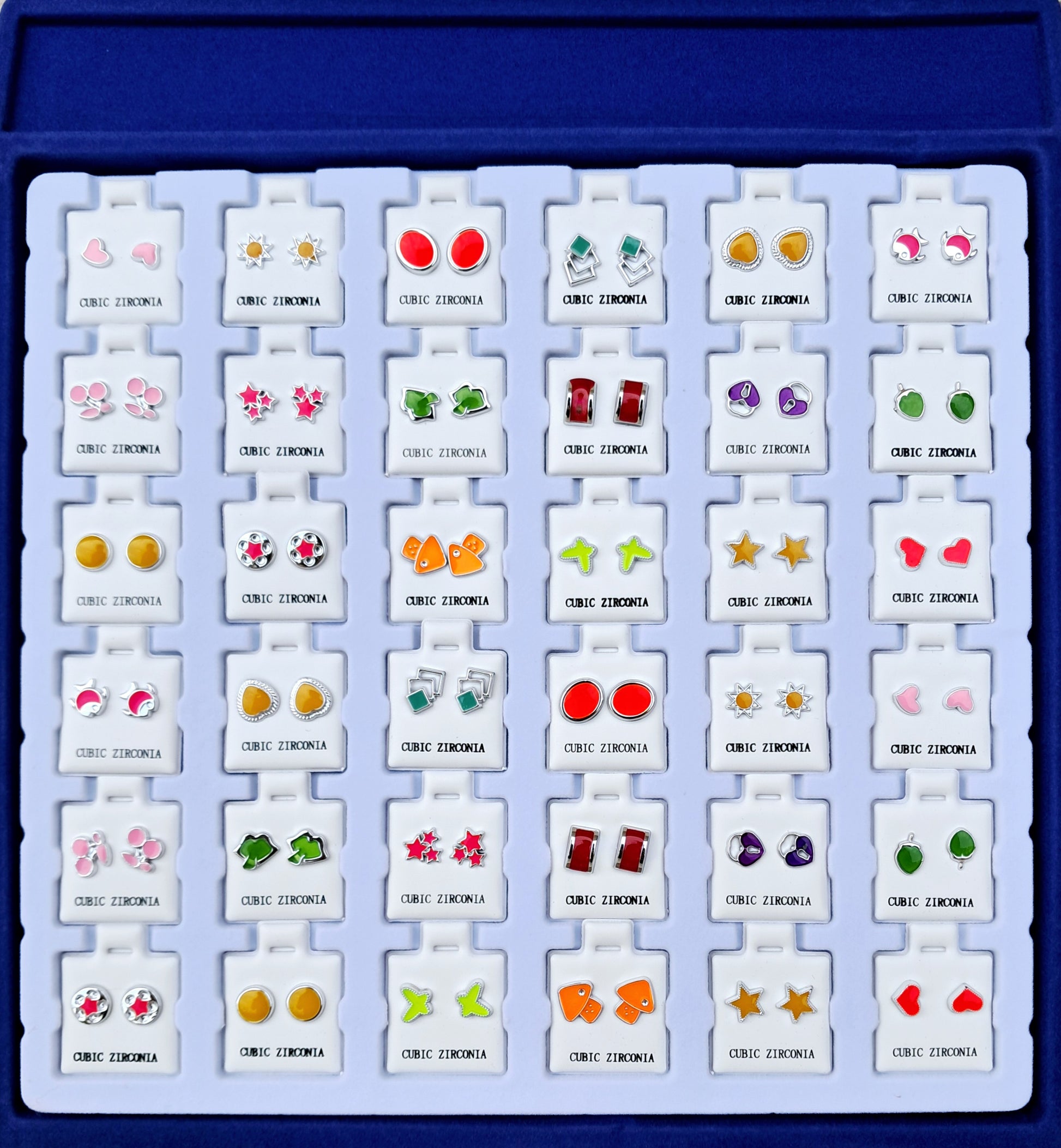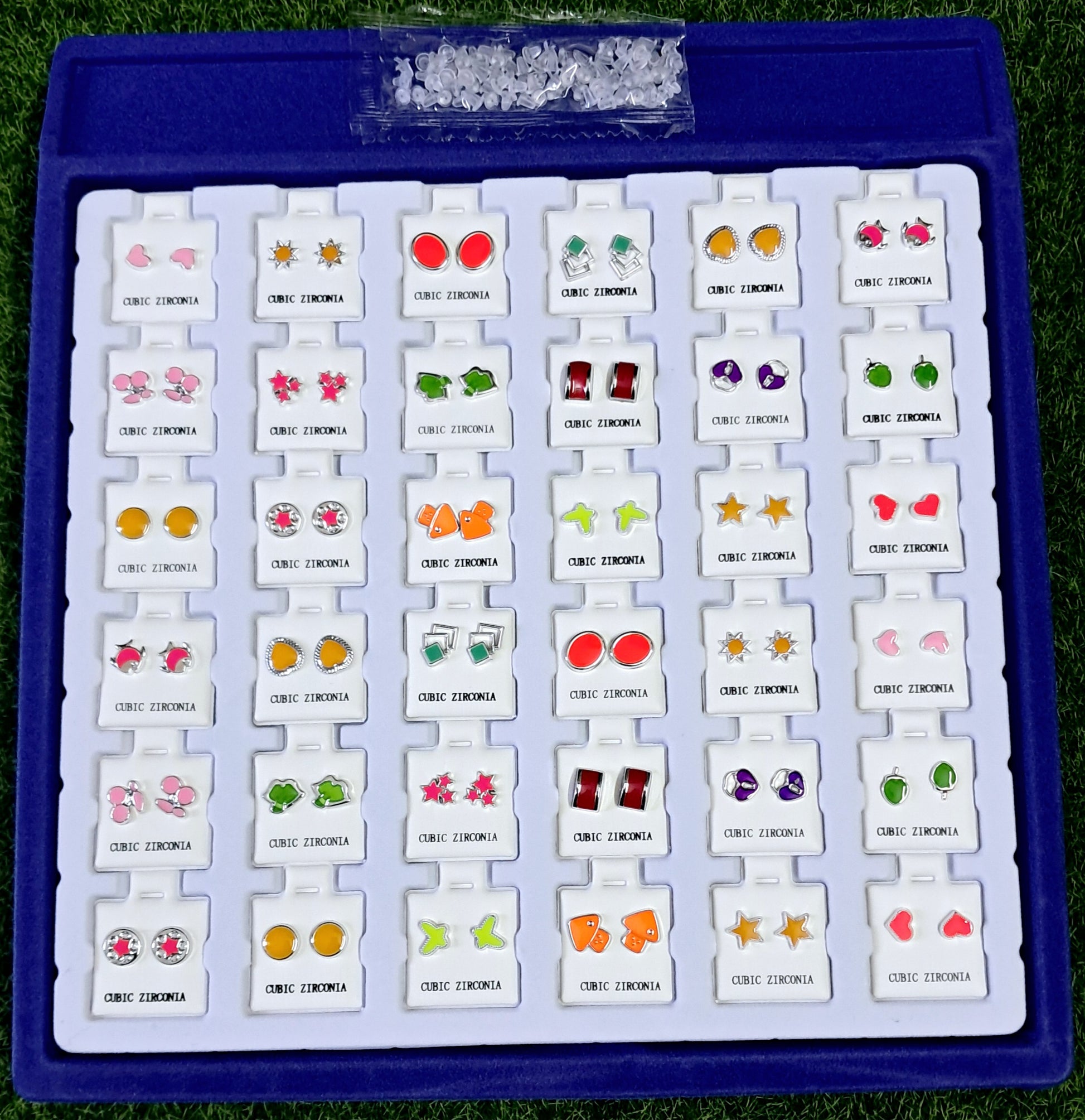 36 pairs of Colorful earring studs which is perfect for return gifts, gifting and economical at the same time each pair costing only Rs 20.