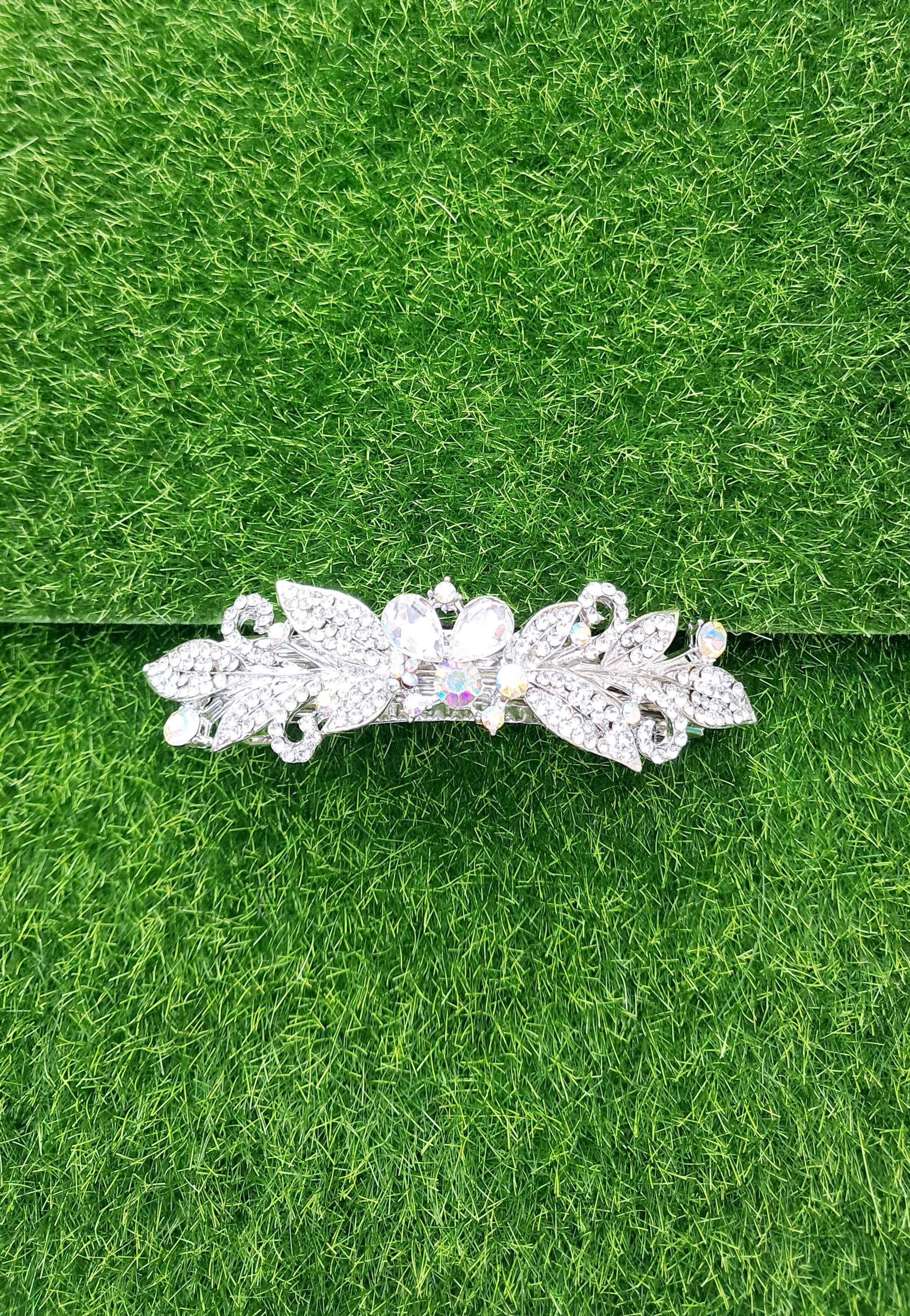 Silver Shade Base Festive Flower Design Studded Hair clip