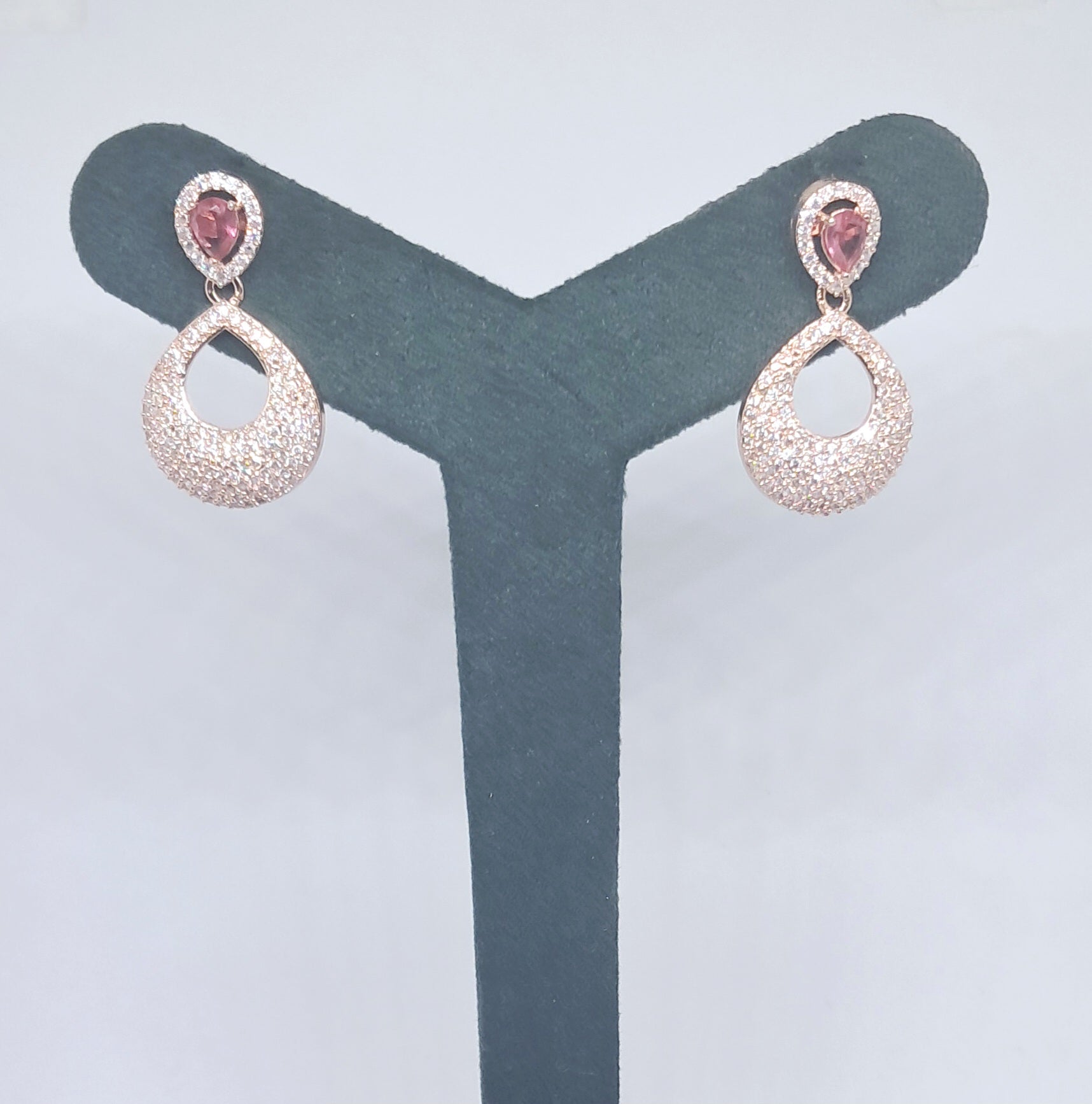 Gorgeous Rose Gold Base Ruby Shade AD Danglers