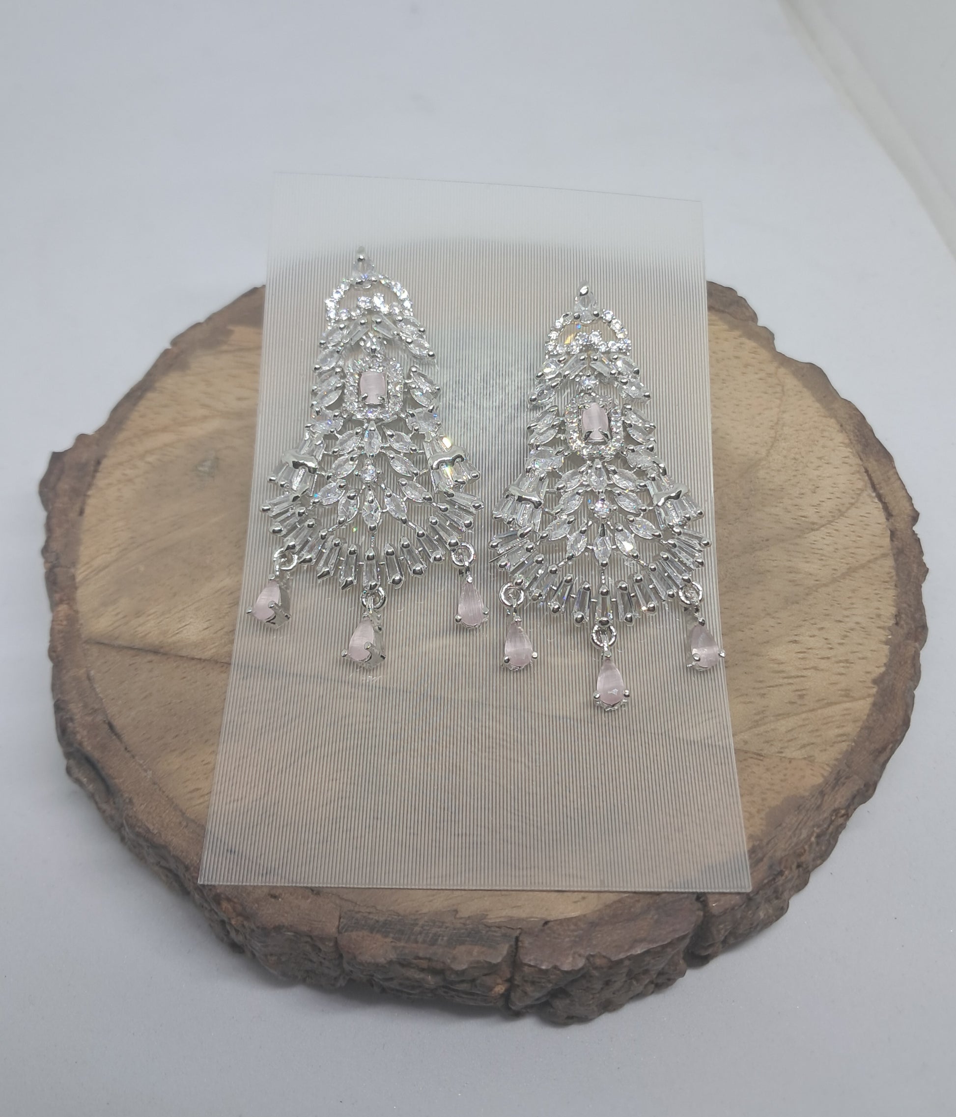 Pretty Pastel Pink AD Chandelier earrings
