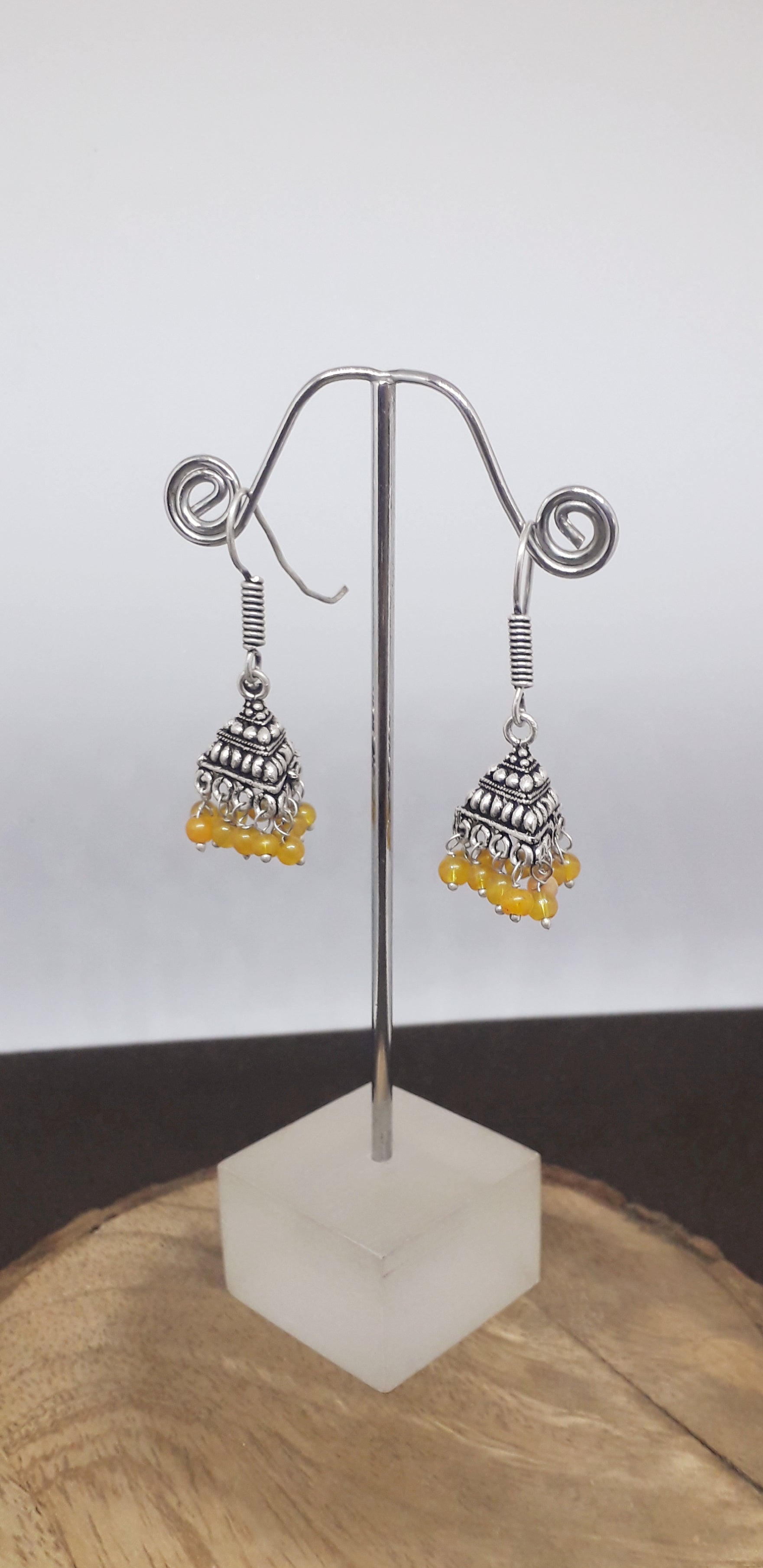 Oxidized Pyramid Themed Jhumkas - Small Size