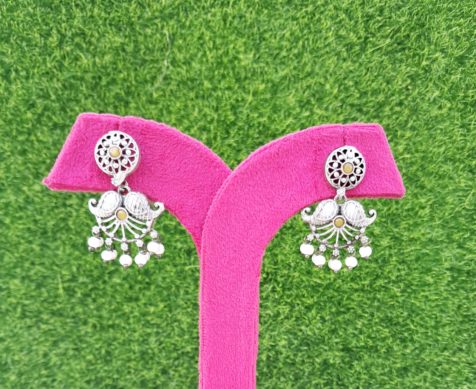 German Silver Replica Classy Traditional Yellow Stone Earrings